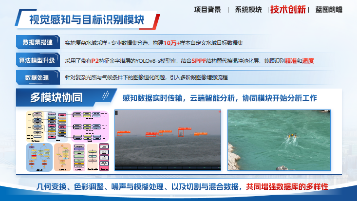 辛元雪、季萍萍、范一远老师指导,本科生郭黄与、华锱剑、伦至远等同学共同完成的《基于国产算力的无人机水域感知与推理系统》项目立足国家“加快数字化发展,打造数字经济新优势”战略背景,聚焦水域场景智能感知与自主决策,利用国产算力平台的高性能计算优势和边云协同架构的实时响应能力,致力于解决水域环境下目标识别精度低、水文监测依赖人工、意图推理能力弱等痛点、难点问题。已在金沙江水域完成验证测试,解决了水域监测长期依赖固定站点、智能化程度低、应急响应慢的关键难题,为水文监测、海事安全、防洪减灾等领域提供了全栈国产化、高实时性的智能感知解决方案。