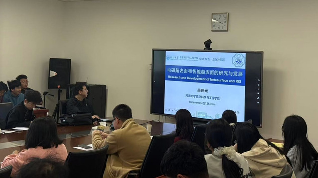2026年4月8日,信息院2026年系列学术报告会第四讲(总第49期)在学院407会议室成功举办。学院青年教师吴瑞元博士应邀作题为“电磁超表面和智能超表面的研究与发展”的专题学术报告。