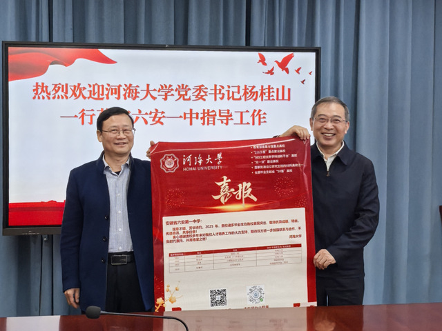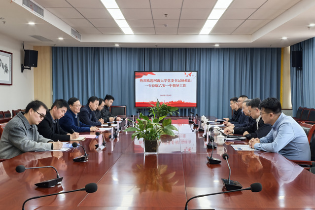 杨桂山书记对六安一中长期为河海大学持续输送优秀学子表示感谢,并祝贺六安一中办学120周年。他提到,我校作为中国水利高等教育开创者,在百十余年办学历程中,始终锚定国家战略发展需要,以水利为特色,工科为主,多学科协同发展,为国家培养了大批骨干人才。他指出,六安一中生源学生表现突出,升学率高,就业质量好,希望以此次交流为契机,持续深化合作,打造“双高”协同育人的典范。